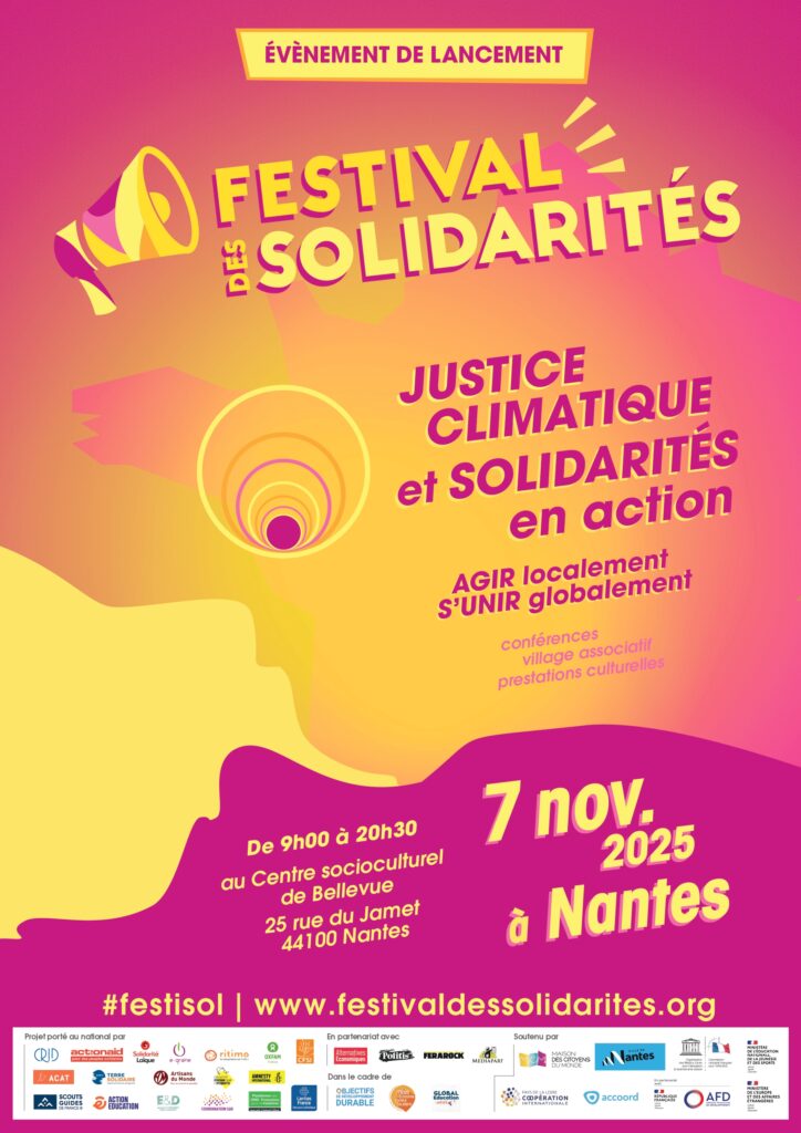 Co-organisé par la Maison des Citoyens du Monde , le CRID et l'AFD, le lancement du Festival des Solidarités qui s’articule autour du thème : « Justice climatique et solidarités en action – Agir localement, s'unir globalement » aura lieu le 7 novembre 2025 à Nantes!
