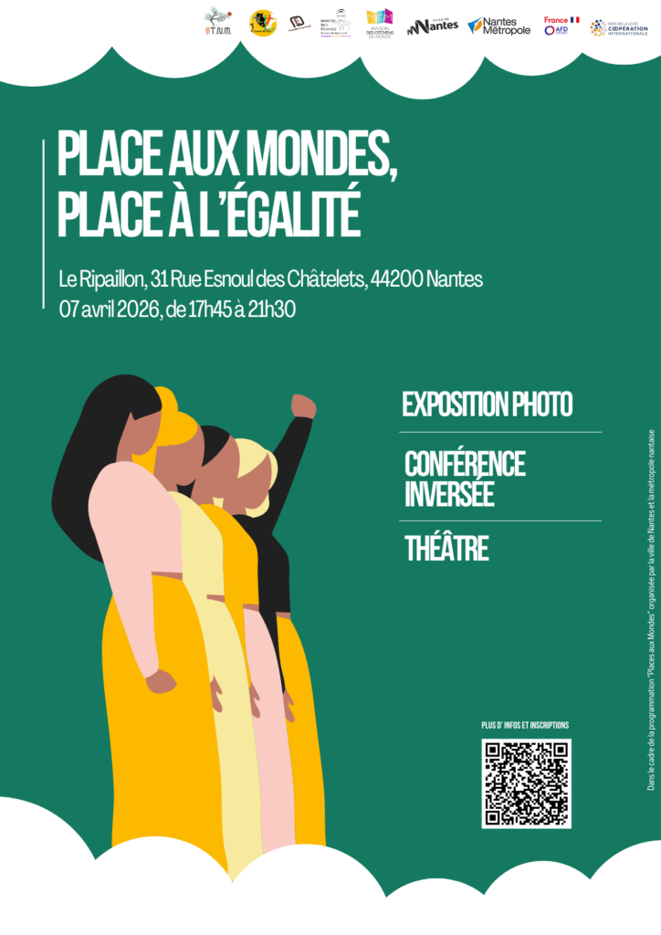 Cet évènement participatif est proposé dans le cadre de la programmation Place aux Mondes, piloté par la Metropole et la Ville de Nantes. Il a pour objectif de mettre en lumière les initiatives portées par les acteur.rices du territoire en écho avec l’exposition 24H de la vie d’une femme.