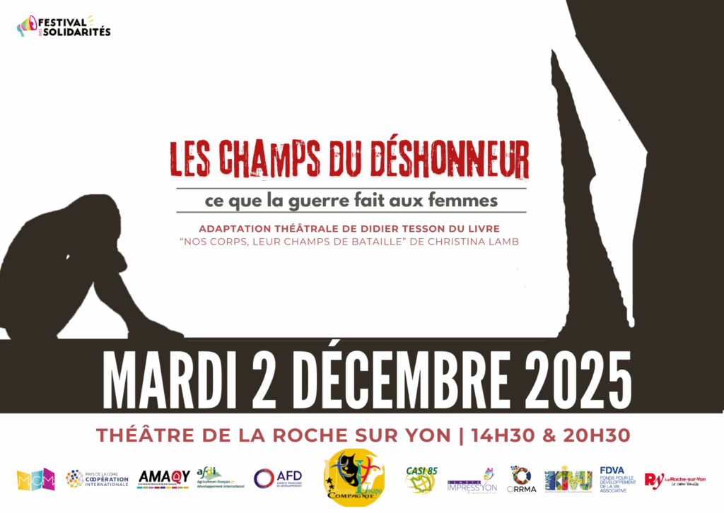 Une adaptation théâtrale de Didier Tesson, du livre “Nos corps, leur champs de Bataille” de Christina Lamb. La mise en scène est réalisée par Prince Bilau Yaya Georges, assisté par Solenn Bonil. Douze comédiens vont mettre en avant cette réalité durant une heure et demi.