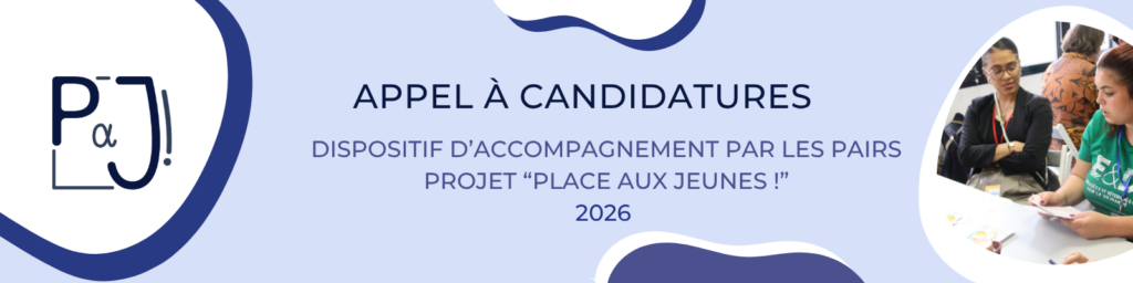 Ledispositif d'accompagnement par les pairs est une des activités du projet « Place aux Jeunes ! » et a pour but de permettre aux organisations de jeunesses, d'éducation populaire et de solidarité internationale d'apprendre ensemble sur desenjeux liés à la prise en compte transversale des jeunesses et/ou à la participation et la mobilisation des jeunes dans leurs projets, structures et gouvernances.